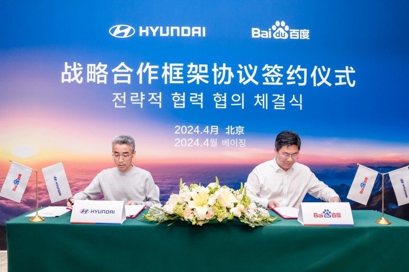 2024年4月27日,现代汽车与百度网讯在北京签署了《战略合作框架协议》,该协议由现代汽车AVP(Advanced Vehicle Platform)本部长宋昌贤社长与百度集团副总裁、智能驾驶事业群组总裁王云鹏共同签署,双方相关人士出席了签约仪式。