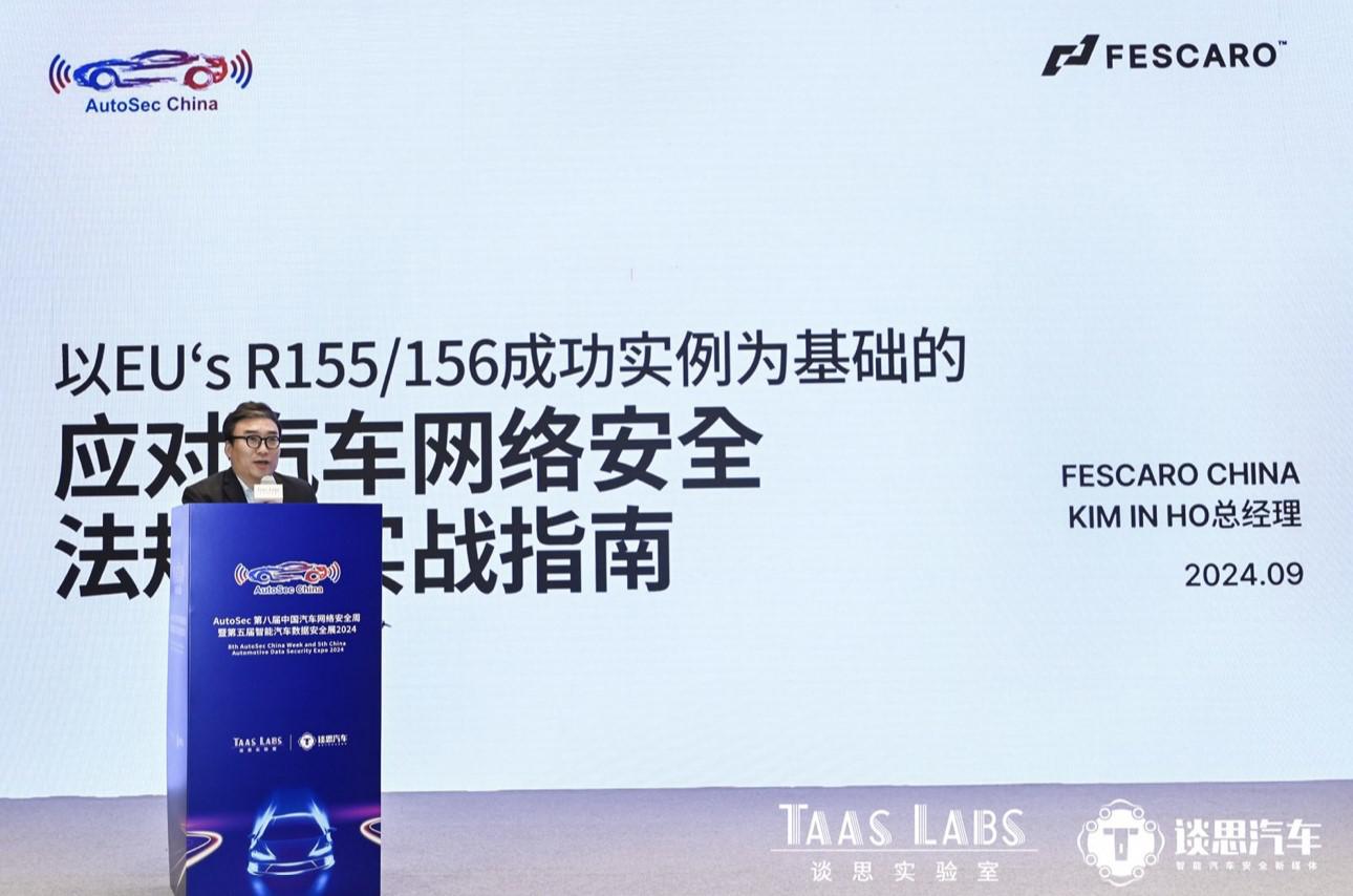FESCARO总经理KIM INHO正在“AutoSec China 2024”上发表汽车网络安全国际监管指南