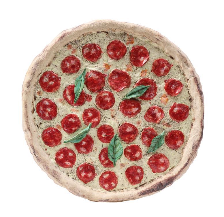 在2024年的景德镇驻留项目中,吴俊豪创作了一系列陶瓷披萨雕塑,延续了他对快餐文化的批评。这些作品不仅通过将快餐食品转化为陶瓷艺术形式来讽刺现代社会对单一价值观的追求,还隐喻了创新的丧失与社会资源分配的不公。 陶瓷作为传统艺术材料,通常与精致和永恒联系在一起,而披萨则是全球化消费快餐的象征。通过这种不协调的组合,吴俊豪打破了艺术与日常生活的界限,质疑了材料的象征性与固有价值。