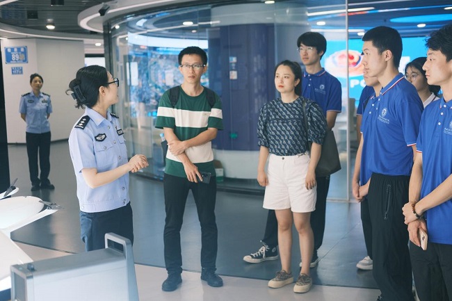 在江津区公安局,实践团同学们参观了区公安系统大数据指挥中心,观摩了无人机在警务实战中的应用,体验了基层警务一网通平台的操作以及智能反诈预警系统。同学们积极分享了深入社区进行各项实践活动的感想,深刻理解了基层警务工作的重要性和智慧警务的前瞻发展。