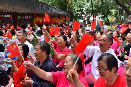 活动在一片掌声中拉开序幕。节目不仅有《我和我的祖国》永恒的关系式的坚定,《我们美丽的祖国》《祝福祖国》对祖国亘古不变的情感和赞颂,也有原创新清音《五星红旗颂》的高雅,还有“此生不悔入华夏,来世还做中国人”的誓言……共同营造了热烈喜庆、文明祥和的节日氛围,也激发了广大党员、居民朋友强烈的爱国主义热情。