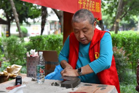 除精彩的节目外,平安苑小区便民服务队还免费提供磨刀、理发等公益服务,获得居民喜爱。现场燃气安全、垃圾分类等互动问答、邮储小知识问答更是调动了全场人员的参与热情。