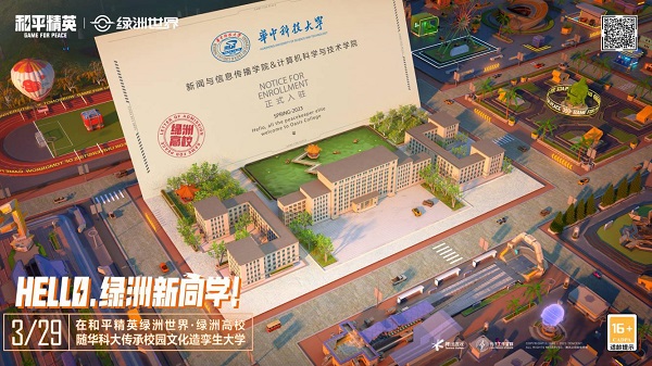 3月29日,华中科技大学携手《和平精英》全新推出的“和平精英绿洲世界”正式上线,华科大作为首批加入绿洲高校的成员之一,与游戏官方合作共建了华科数字园区,为广大玩家带来了一幅绚烂多彩的开放世界校园生活图景。