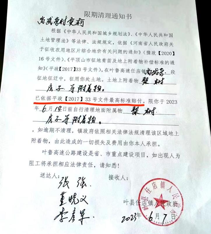 作为被征占方,我们认为,拆迁方应当按照河南省的经济林补偿标准对我们补偿。然而,我们这标准的经济林果园,在叶鲁高速开建时却被叶县高速指挥部决定套用平顶山【2017】33号文件用零星果树补偿的标准对征占的八亩果园共计补偿18万元。两个标准相差20倍。