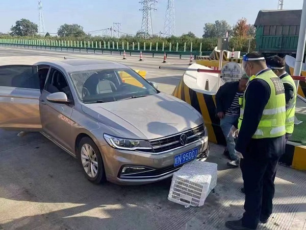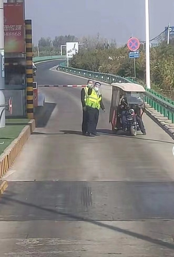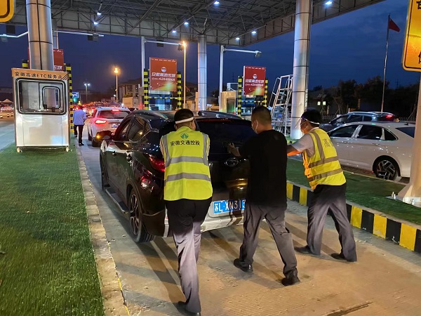收费一线职工们一边耐心地向司乘人员解释封道原因,一边为司乘人员服务。在收费广场,到处可以看到志愿服务者的身影。