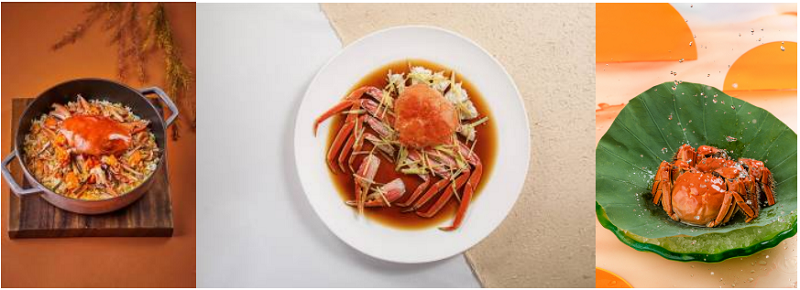 三门膏蟹焗饭、绍兴太雕酒老姜枫叶蟹、陈年花雕熟醉蟹