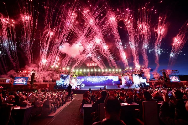 接下来,伴随着绚烂的灯光,文艺演出陆续通过阿里民间传统的击鼓表演、国家级非物质文化遗产扎达等别具特色的节目,展现了阿里地区悠久灿烂的古代文明遗存,以及阿里各族人民与自然和谐相处、昂扬向上的精神面貌。整场文艺演出以一种恢弘、瑰丽而带有神圣文化气息的美征服了观众,生动展现阿里地区以及象雄文化的起源与发展历程,其中美不胜收的烟火表演更是将开幕式推到气氛最高点,现场多次响起热烈掌声。